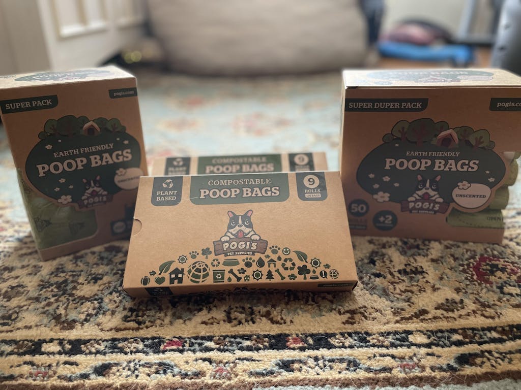 We've been using Pogi pet products for a few years now and they are an essential in our 3 dog household! Our favorite products are the compostable poop bags and the travel wipes. We Woof Pogi Pet Supplies!!